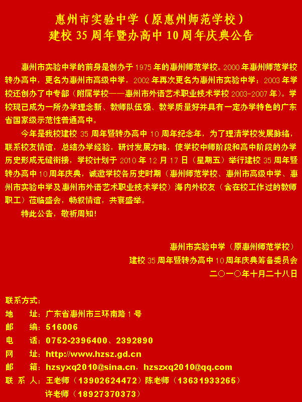LETOU(乐投)(原惠州师范学校)建校35周年暨办高中10周年庆典公告