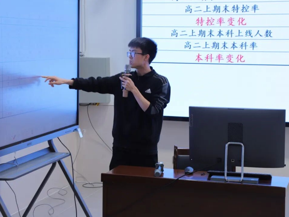 大会伊始,黎家慧、何焕淇老师分别作高一年级、高二年级上学期期末考试成绩分析汇报,精准剖析各年级教学成效与现存问题,为新学期各年级教学优化、针对性提升指明了具体路径。