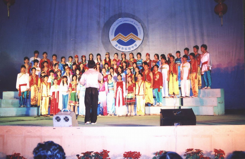 为庆祝新年的到来,我校庆祝2006年元旦合唱比赛于12月29日晚在学校体育馆举行,首先由校长致祝辞,邓校长向全校师生表达了节日的问候与新年的祝福。
