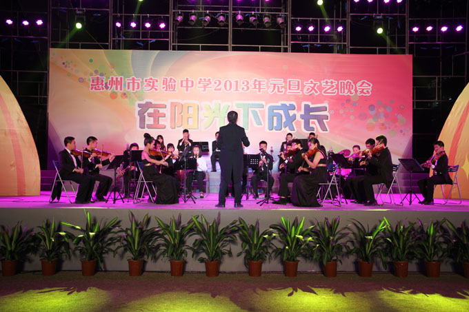 首先登场亮相的是校交响乐团管弦乐队,年轻的乐手们为大家演奏了欢快的《好日子》和充满活力的《拉德斯基时行曲》。晚会节目还有:师生同唱的歌剧联唱《西班牙风韵》、富于创意的音乐话剧《爱丽丝梦游仙境》、传承汉文化特色的服饰展示《汉墨风华》、古韵飘香的古筝三重奏《百花引》、充满眷恋和期待的齐唱《那些年》、激情四射的街舞表演《舞出我青春》等,这些表演无不展示着我校师生的智慧、风采、创意和激情。在省第四届中小学生艺术展演决赛中获得语言类二等奖的配乐诗朗诵《相信未来》,获得声乐类一等奖的无伴奏混导报合唱《快乐的聚会》也向全体师生进行了汇报演出,博得大家的交口称赞。晚会在难忘今宵的乐曲中结束,校班子成员与全体演职员合影留念。