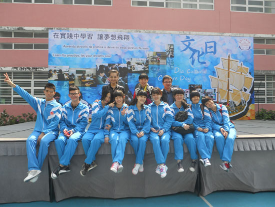 一周来九位同学与高美士中葡中学的同学们一起上课、参加辅助课程,并在该校师生的陪同下参观了大三巴、龙环葡韵、黑沙等澳门著名景点,深入感受了澳门同学们的学习生活。22日同学们参与了高美士中葡中学一年一度的“校园文化日”活动,在上午举办的课业分享活动中介绍了我校学生的学习生活情况,胡莹莹同学还用四天当中所学到的葡语流利地表达了在澳门学习的感受,引起全场一片惊叹。在下午的文艺活动环节同学们演唱了《爱》、《第一天》两首歌曲并展示了中国武术,得到了澳门师生的欢迎。