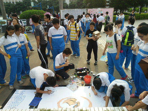 为丰富学校师生的校园文化生活,提高学生们的艺术修养和审美水平,促进热爱艺术的学生之间的交流与沟通。校团委于5月26-28日在校园主校道上开展为期三天的“百花齐放”艺术展示活动。