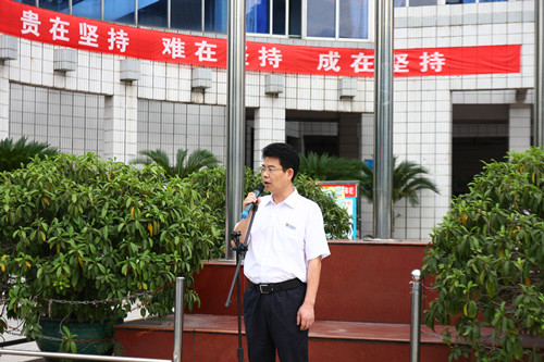 升旗仪式上,黄津海校长为高三学子即将迎来的高考发表了热情洋溢的讲话,并提出了几点建议:一是相信自己,永不言弃。要以剑客的姿态,即便是倒下也要倒在冲锋的路上;二是调整心态,快乐出发。保持平常心,营造好环境,扬起常笑脸,轻松迎高考;三是奔向梦想,迸发能量。三年储蓄的能量,等待激活和爆发,你的梦想必定成功!