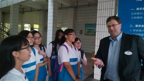 Lyng博士在介绍会上向我校学生介绍了温德米尔学校。我校与会学生积极互动,给来访者留下了深刻印象。