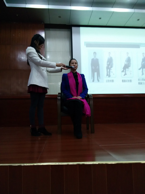 易老师结合培训内容、人生经历、身边实例,分别从礼仪的起源、教师仪容仪表、言谈举止、大型活动(会议)礼仪、接待礼仪、升旗礼仪等方面进行了讲解,从教师的职业特点、职业形象等方面进行了重点阐述。易老师以其自身的典雅示范、图文并茂的课件、生动幽默的语言、现场热烈的互动完美地诠释了现代教师礼仪,赢得了全体教师热烈的掌声。