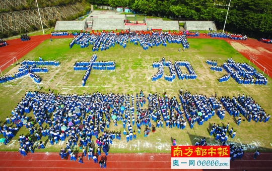 惠州实验中学上千名高一高二学生站队,拼出“实中加油”