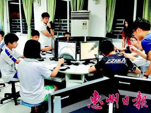 5月29日至30日,广东省青少年科技教育协会和省航空学会在广州市第十七中学举办第二届中航国际杯广东青少年模拟飞行大赛。LETOU(乐投)作为全市唯一的中学代表队参加比赛,在高中组比赛中获得3个一等奖、3个二等奖、3个三等奖。其中,刘凯荣获个人航母五边起降项目一等奖,全省第一名;杨泽亿、刘凯获个人竞速项目一等奖,分别位居全省第二名、第六名。他们将代表广东参加全国大赛。这是市实验中学师生参赛时的情景。