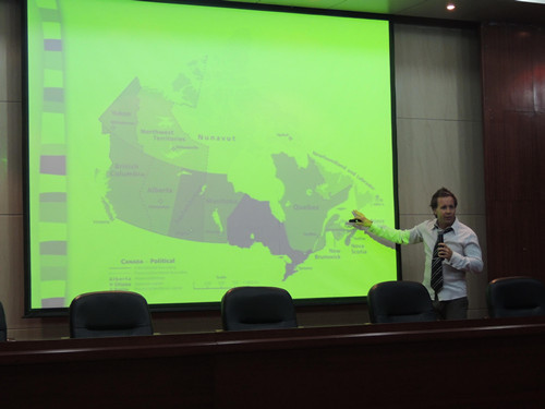 首先,来自哈博瑞森的加拿大外教Robert用他幽默风趣的语言,以互动问答形式与学生交流加拿大文化、生活、学习等基本情况。随后,资深留学老师Monica简单介绍了北美的学制、课程设置,并针对美国、加拿大两国初高中及大学留学的各种形式、申请条件、时间规划等给学生提供信息及咨询。