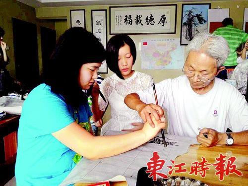 华裔青少年学写毛笔字。本组图片 《东江时报》记者范文燕 通讯员高峰 摄