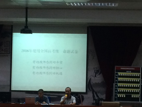 会上,惠州市教研员周瑞彬主持了会议,接着陈佳民教授就近年来广东省命题形式的变化以及教材的使用做了深入的分析和指导。同时对全国卷与广东卷内容与结构的不同进行了详细的对比与分析。