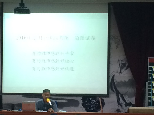 9月15日上午,为促进高中语文教学及高考备考工作,陈佳民教授在我校开设关于教材使用与语文备考问题的讲座。与会人员有惠州市全体高三语文教师及高一高二备课组组长。