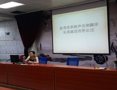 随后,来自深圳的市地理教研员龚湘玲老师做了如何应对全国卷的专题讲座,提到:“全国卷与广东卷的差别不是内容上的差别,也不是难度上的差别,而是思维方式的差别,今后教师的教学重点应在思维过程的训练。”龚老师的报告既有理论高度,又能结合实例进行分析,很接地气,受到了与会老师的热烈欢迎。