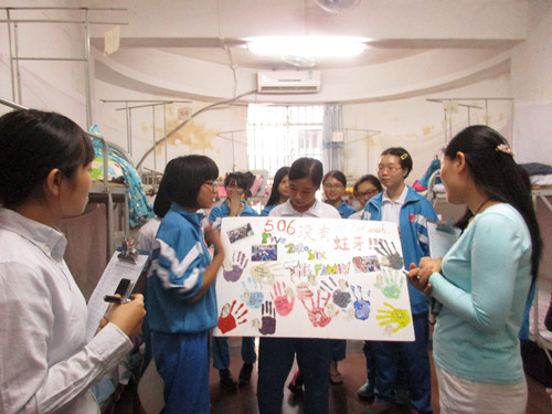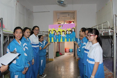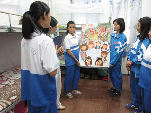 下午4点,评委老师便到各个宿舍进行评比打分。参赛宿舍都非常激动地等待评委老师的到来,希望能在第一时间向评委老师们展示他们的劳动成果。宿舍精彩的展示与解说吸引了许多围观的同学,大家一起感受着一个团结、和谐的宿舍氛围,传递着团结友爱的校园文化气息。尽管每个宿舍都有不同的风格与特点,但每个宿舍都有一个共同点:都透露着学生们的团结友爱、多才多艺与青春风采。热情的解说、精美的名片设计、干净整洁的宿舍卫生等深深地感染了评委老师,无论是学生还是老师,都完全沉浸在这欢乐愉快的气氛中。