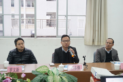 近日,南旋集团副总经理谢明强、主席助理何志强、悦富地产副总经理刘惠奕、行政部经理罗文新一行莅临我校参观考察,对学校2015级“南旋宏志班”的办学情况进行了了解,并在学校校长黄津海、副校长任用镭、副校长温和的陪同下参观了校园。 座谈会上,各处室主任及2015级“宏志班”部分学生参加了会议。