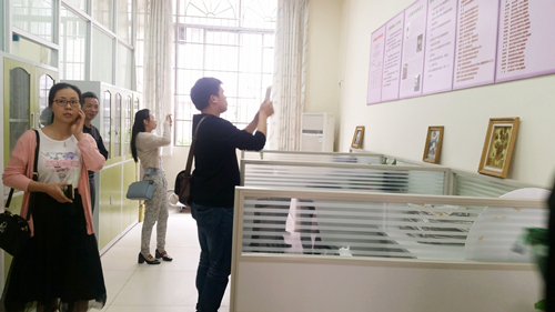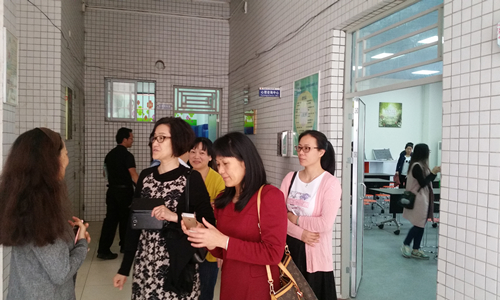 首先,来宾们参观了我校心理咨询室、心理活动课室、心理放松室等功能室,新颖温馨而专业的环境受到大家的喜爱,大家纷纷拍照留影。而后,老师们进行了心理健康教育工作座谈会,副校长温和介绍了我校的基本情况,对来宾的到来表示热烈欢迎,心理中心张波主任对我校心育工作模式及实效做了总体的介绍,张旭晖、何碧兰和唐慧珍三位老师分别从心理课程、心理咨询、学生社团及班级心理管理三个层面做了专业的经验介绍,驻校社工陈雪花从心理健康教育辅助方面也做了详细的介绍。