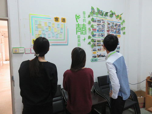 本次交流座谈会由实验中学驻校社工统筹开展,主要分为两个部分:服务内容交流与服务场地参观。首先由阳光社工对需求调查、项目状况、工作开展、未来计划等内容进行PPT解说与分享,让客人对驻校社工的工作有更加直观的认识。随后,双方就一些议题进行了重点交流,例如志愿者管理、特色服务、与校方合作互动等内容。在交流的过程中,双方分别讲述了目前各项工作的情况、开展进度、途径等,使得工作思路更加开阔。除了分享工作内容、工作心得,驻校社工们也讨论了在工作中遇到的困难,在激烈的讨论中迸发出一些新的想法。作为一线社工,驻校社工们有许多共同的话题与感受,整个交流过程持续了两个多小时,双方都收获了许多。最后,在阳光社工的带领下参观了服务场地,双方对于场地布置与社工宣传交换想法。