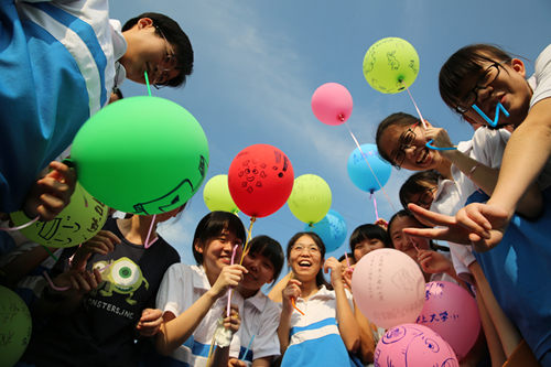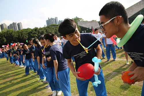 在学校足球场上,1300多名高三考生,分三批进行 “梦想传递”的游戏。游戏以班级为单位排成一列,在每支队伍前面,是同学们最可敬最可爱的班主任,是“梦想的起点”。班主任老师和学生嘴里叼一根吸管,在吸管上放一根橡皮筋。比赛开始后,学生们依次用嘴叼吸管的姿势将橡皮筋传递给下一个同学。20根橡皮筋,用时最短的班级就是胜利者。活动中,大家嘴巴叼着五彩缤纷的吸管,小心翼翼的传送着橡皮筋,蹲下,侧身,转身,踮脚,随处可见专注凝神的表情,很美也很有力量。加油声,喝彩声响彻整个操场。每一位学生都勇敢、大胆地去拼搏合作,“团结,欢乐,沟通,分享”是整个活动的主旋律。
