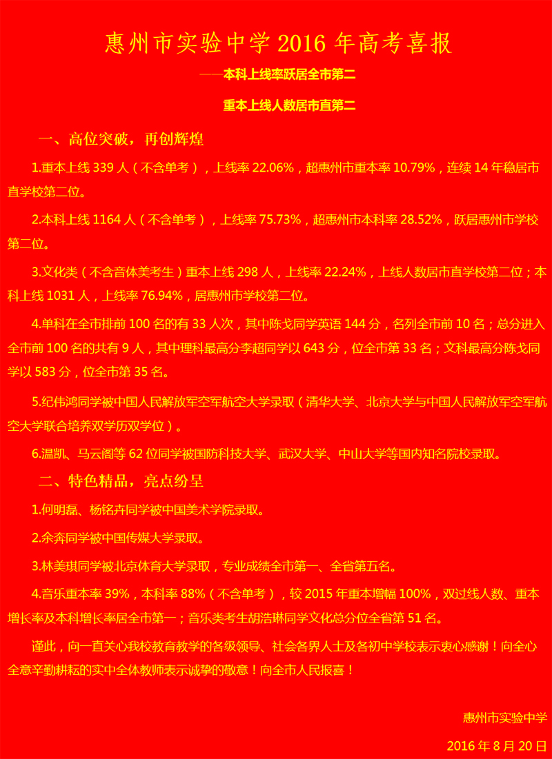 LETOU(乐投)2016年高考喜报