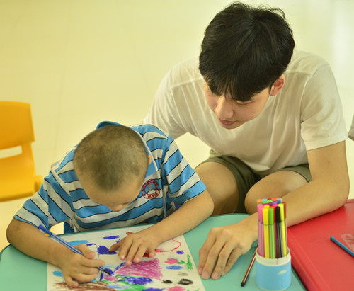 为避免让儿童在活动中产生被抛弃的心理体验,“艺术绘心”活动期间志愿者与小朋友采用长期“1对1”固定配对的方式,协助指导孩子们多种主题的绘画学习,例如《小王子与玫瑰花》、《人与自然的和谐》、《白日梦》、《我的朋友》等主题的针对“美好”而设计的内容,从而充分丰富孩子们的暑期生活,尤其是志愿者们给予孩子们成长中所需的关爱——一种被人疼,有人念的感受,而志愿者们也在给予孩子们的关爱中收获到了孩子们的天真灿烂的笑容和体验到自身所拥有的幸福。