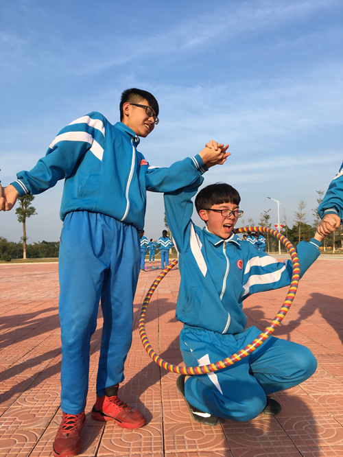 同学们带着军训中形成的良好作风尽情投入到这次欢快的活动。同学们“集体的一员”思想深深的烙在脑海里,“梦想传递”、“玩转呼啦圈”,大家毫不松懈,放下所有芥蒂,尽情展示自己,用行动为班级争得更快,更好,更强!嘴巴叼着的习惯虽长,皮筋虽轻,所有皮筋在不借助手的情况下进行“梦想传递”,由于脸部的用力及调整,每个同学展示出来的丰富表情,让大家都亮瞎了双眼!军人的意志力、全力以赴的精神、团队的默契在活动中一览无遗。手牵着手的实中学子们,让直径只有一米的呼拉圈通过每一位同学,先从肩膀通过?还是先从脚下跨过呢?看着自己及其他同学扭转的身体,大家都忍俊不住!顺利完成“玩转呼拉圈”活动,身体的协调性、组员们的配合可是至关重要的。教官和班主任在旁鼓励加油,团队在胜利完成活动后雀跃而起,欢呼声此起彼伏,热闹了整个军训基地!温暖了同学们的胸怀!
