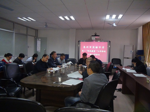 会上,孟主任首先布置了在高一年级全面推进“阳光课堂”的一系列工作:以备课组为单位观看录像课,确保教师熟悉阳光课堂组织形式,安排核心成员上好示范课,组织分配文理科听课成员名单,以及以备课组为单位做好4月下旬我校面向全市的教学开放日准备工作等;黄光辉老师就“阳光课堂”模式操作流程向核心成员进行详细解说;谢振中副校长勉励全体推进小组老师要吃透课改教学流程,备课组要认真讨论教学内容,且关注学情,真切希望老师们为学校创品牌做出奉献;张启龙副校长针对阳光课堂实施过程中可能出现的问题提出了中肯的建议;最后陈以祥主任代表高一年级作了表态发言。