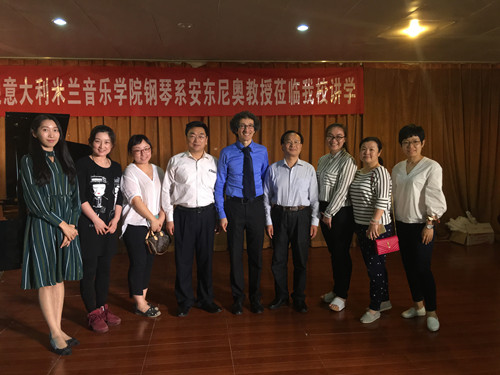 Antonio Maria Tessoni,米兰音乐学院钢琴教授,曾担任维琴察音乐学院副院长兼钢琴教授,也曾担任苏黎世音乐学院著名中提琴家克里斯多夫·席勒的钢琴助理。他经常在意大利及其他国家举办讲座、大师班和音乐赏析等各种活动,担任音乐大赛评委,还开办艺术歌曲演奏和钢琴教学课程,并已在本科和研究生专业中永久立项。他在声乐演唱及声乐作品钢琴伴奏方面独有建树,在意大利及其他国家举办过多场音乐会,曾与很多知名音乐家、歌唱家都有过合作,还在意大利的各类音乐比赛中夺冠。在他指导下的学生都能够充分挖掘个人的潜力和演奏个性。