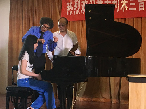 Antonio Maria Tessoni教授生动形象的介绍了意大利的人文地理环境以及学校情况,欢迎中国的学子到意大利求学。指导了高一音乐班4位学生黄子兰《拉赫玛尼诺夫练习曲》、王琪能《悲怆第一乐章》、梁筠怡《悲怆第三乐章》、陆瑶《暴风雨第三乐章》,分别从手指触键感受,听觉分辨两只手的不同情绪,并从踏板的应用,节奏的准确性等进行讲解。Antonio Maria Tessoni教授充满激情、技艺精湛丰富的教学,另在座的同学和老师们深深陶醉。