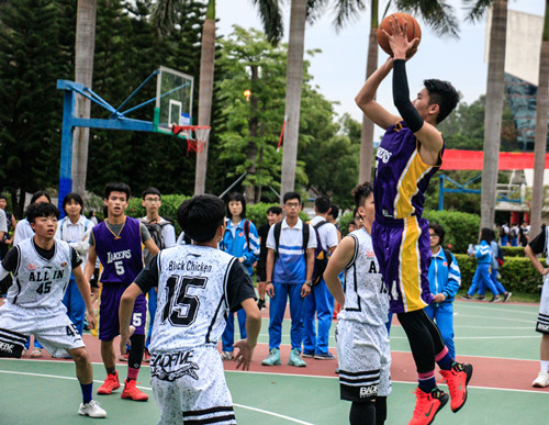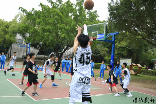 一只篮球牵动时刻激情澎湃的热心,一种信念燃放学生倔强灵魂间的默契,一声哨响激情百可心共同律动,带球过人,转身投篮,起跳灌篮,无一不显示出队员们的精湛的球技,无一不发出那雷鸣般的掌声,喝彩声,尖叫声。每一场比赛现场气氛都非常紧张,所有人的目光都紧盯着篮球的节奏跳动,只见场上的队员运球潇洒,技艺娴熟的展开重重防守,场下的同学也毫不吝啬的加油,助威声此起彼伏。