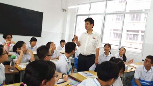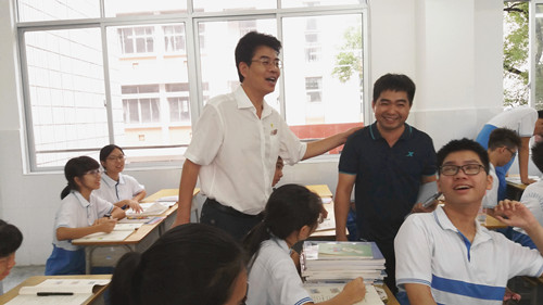 课堂上,校领导与学生一道,认真听着任课老师的讲解,并不时做着笔记。课后,校领导与教师交流,在对教师授课充分肯定的同时,还就如何更好地实施阳光课堂提出了建议;与学生亲切交谈,了解学生的需要和思想动态,鼓励学生坚持梦想,努力奋斗。