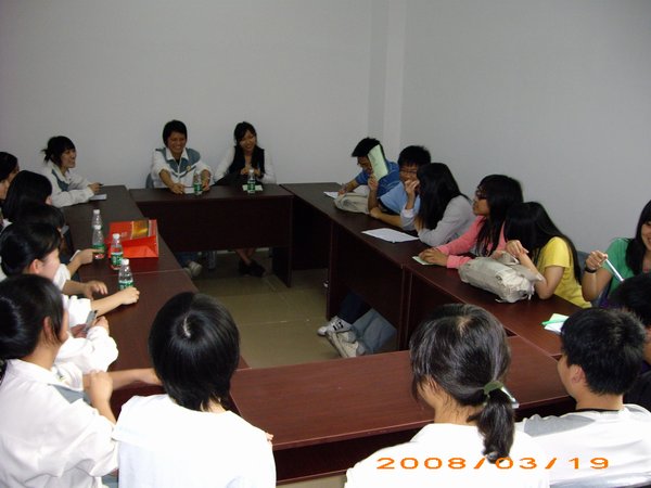 交流团一行在学校报告厅听取了我校校长作的学校基本情况介绍并互赠纪念物后,参观了校园并与我校教师、高三年级学生代表分别进行了分组交流。