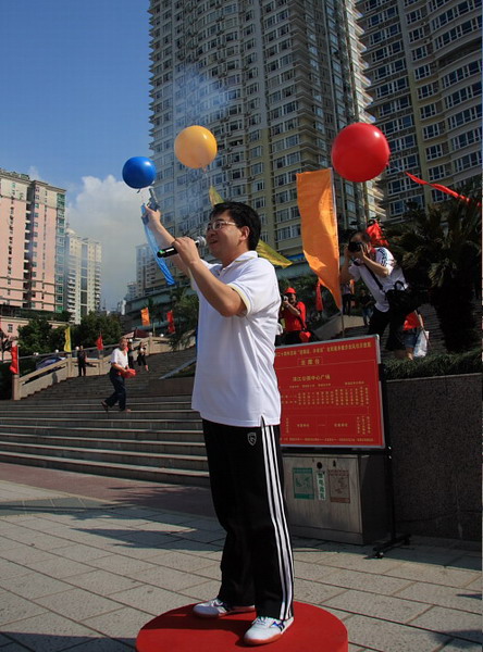 今天下午,我校德育处组织100名师生参加了由市体育局主办的“庆祝惠州设地级市二十周年 迎奥运、办省运全民健身健步走”活动。活动现场举行了精彩的文体表演,随后中共惠州市委秘书长吴卫华同志一声令下,全民健步走活动拉开了帷幕。数千人从滨江公园出发,行走至活动的终点站朝京门。本次活动旨在,通过全民健身展示活动和组织市民参加“迎奥运、办省运”全民健身健步走活动,营造“迎奥运、讲文明、树新风”,“当好东道主、办好省运会”的社会氛围。