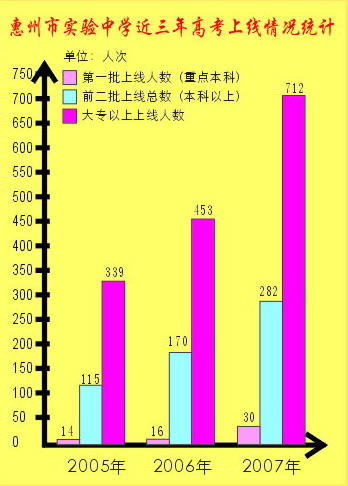 两年来,LETOU(乐投)和永汉中学的城乡联动工作提升了两校的教育、教学、教研和管理水平,促进了两校的全面快速发展,取得了显著的效果。龙门县永汉中学继2006年高考和中考取得好成绩后,2007年高考和中考又喜获双丰收,高考超标为200%,居全县第一;中考超标人数和超标率居龙门县第一。LETOU(乐投)继2006年被评为广东省一级学校后,2007年高考和中考又喜获双丰收,高考超标为200%,居全县第一,中考超标人数和超标率居龙门县第一。我校继2006年被评为广东省一级学校后,2007年又通过了广东省国家级示范性普通高中初期督导验收;2007年高考又取得了历史性的新突破,本科上线282人,比上年增长75.2%,其中重点上线人数比上年增长87.5%,本科及重点上线人数、本科上线率均名列市直重点中学第二,再次荣获惠州市人民政府颁发的“高考成绩进步奖”。