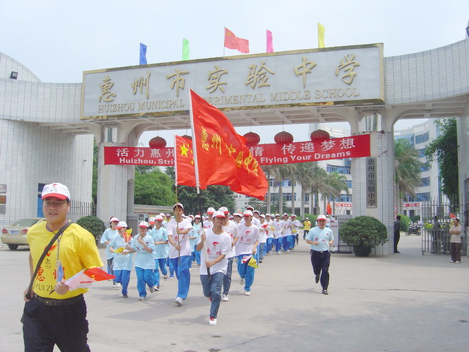 中午1时,当举着圣火的火炬手迈着矫健的步伐跑过来的时候,实中的师生们热情地挥动着五星红旗。大声呐喊:“中国,加油!”,“惠州,加油”。 欢呼声、呐喊声此起彼伏,他们想告诉圣火:惠州人爱你;想告诉我们的祖国:实中人爱你。