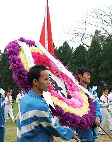 4月3日上午,学生代表早早来到了烈士陵园。他们胸佩小白花,手捧大花圈,在肃穆庄严的气氛中进行了3分钟默哀、向烈士鞠躬、献花、重温共产主义青年团入团誓词等仪式。随后,同学们绕烈士墓一周,瞻仰了革命烈士纪念碑,并献上自己亲手制作的小白花,以表缅怀与崇敬之情。