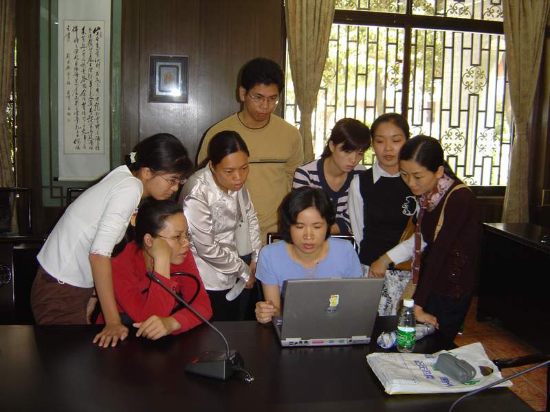 我们的老师在广雅中学老师的安排下,先到教室听了各自学科的课,然后由广雅中学的何主任给我们介绍了该校新课改实施的总体情况,接着我们的老师和广雅中学的老师进行了学科对学科的交流,随后,我们还参观了该校的实验室、资料室等教学设施。