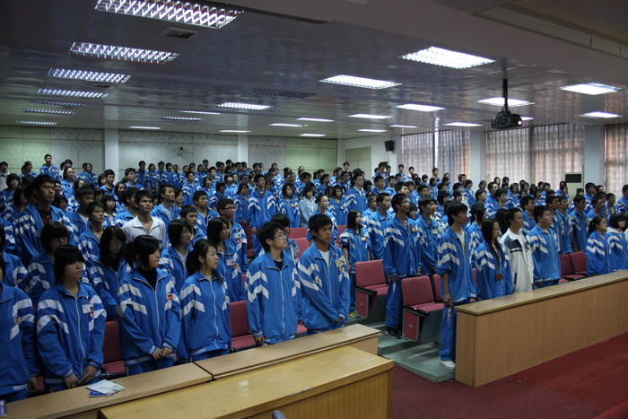 会议在庄严的国歌声中拉开帷幕。吴剑锋书记宣布了新一届校团委会、学生会主要学生干部名单,并宣读了表彰决定,对青年志愿者服务队、体育部、纪检部、组织部、卫生部、外联部等六个先进集体,黄林锋等41名优秀学生干部进行表彰。08届学生干部钟俞鸣同学和09届学生干部丁映玲同学作了发言,表达了全体学生会、团委会干部对学生会、团委会工作的热爱,同时也号召09届全体学生会干部能以身作则,树立学生干部的良好形象,以更加积极进取的姿态,努力开创工作的新局面。